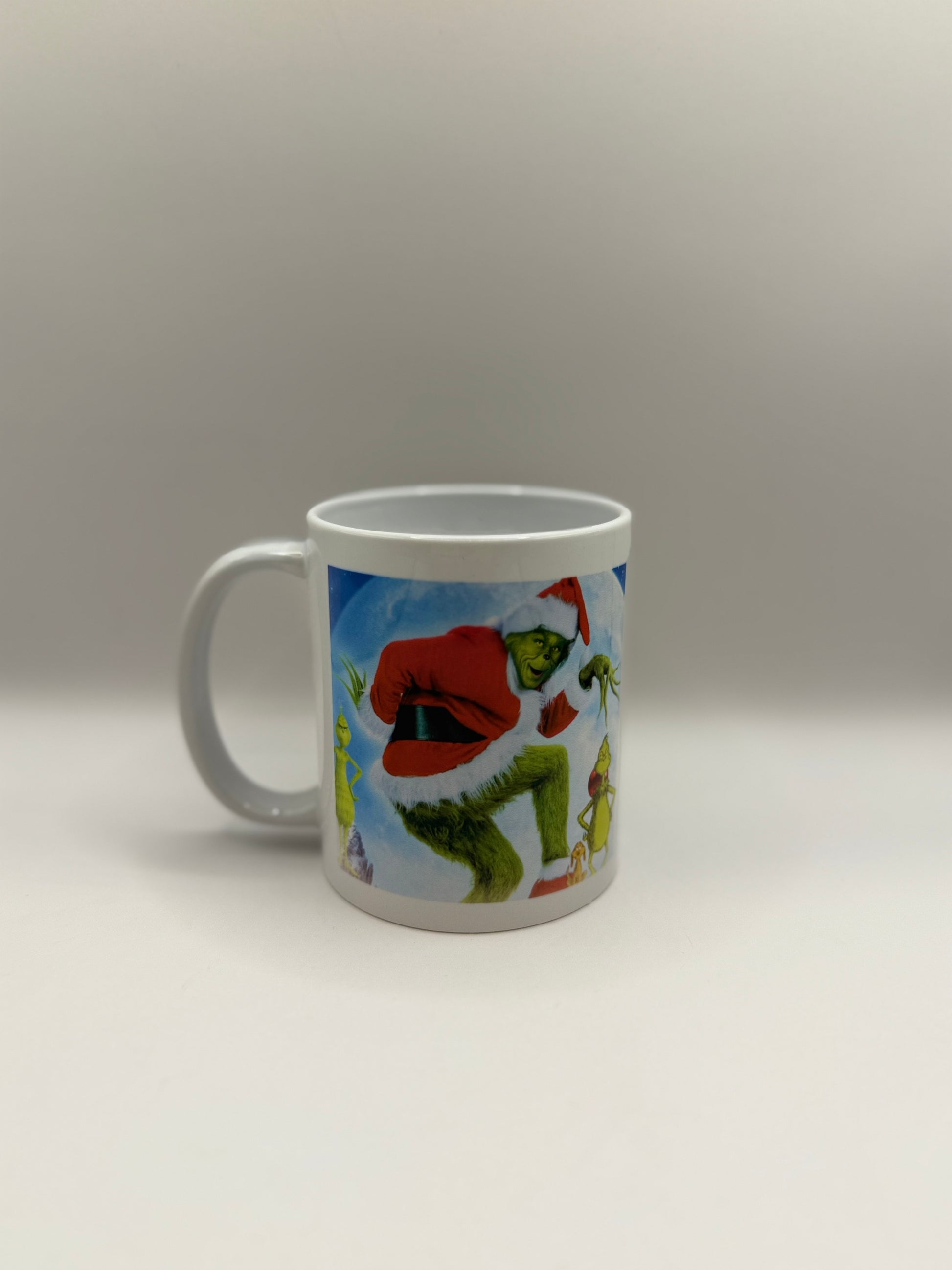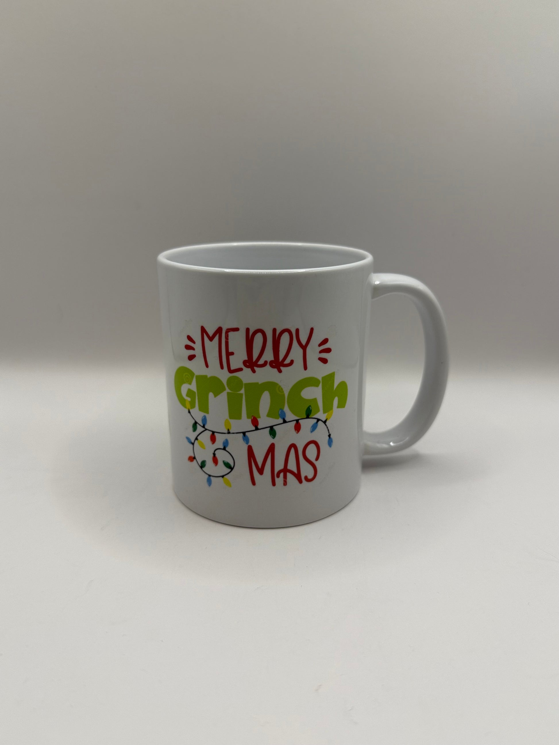 Celebrate the season with this hilarious "Merry Grinchmas" mug! One side features the playful text wrapped in Christmas lights, while the other shows the Grinch in a Santa suit. Perfect for anyone who loves Dr. Seuss's classic tale or needs a little sarcasm with their holiday cheer.