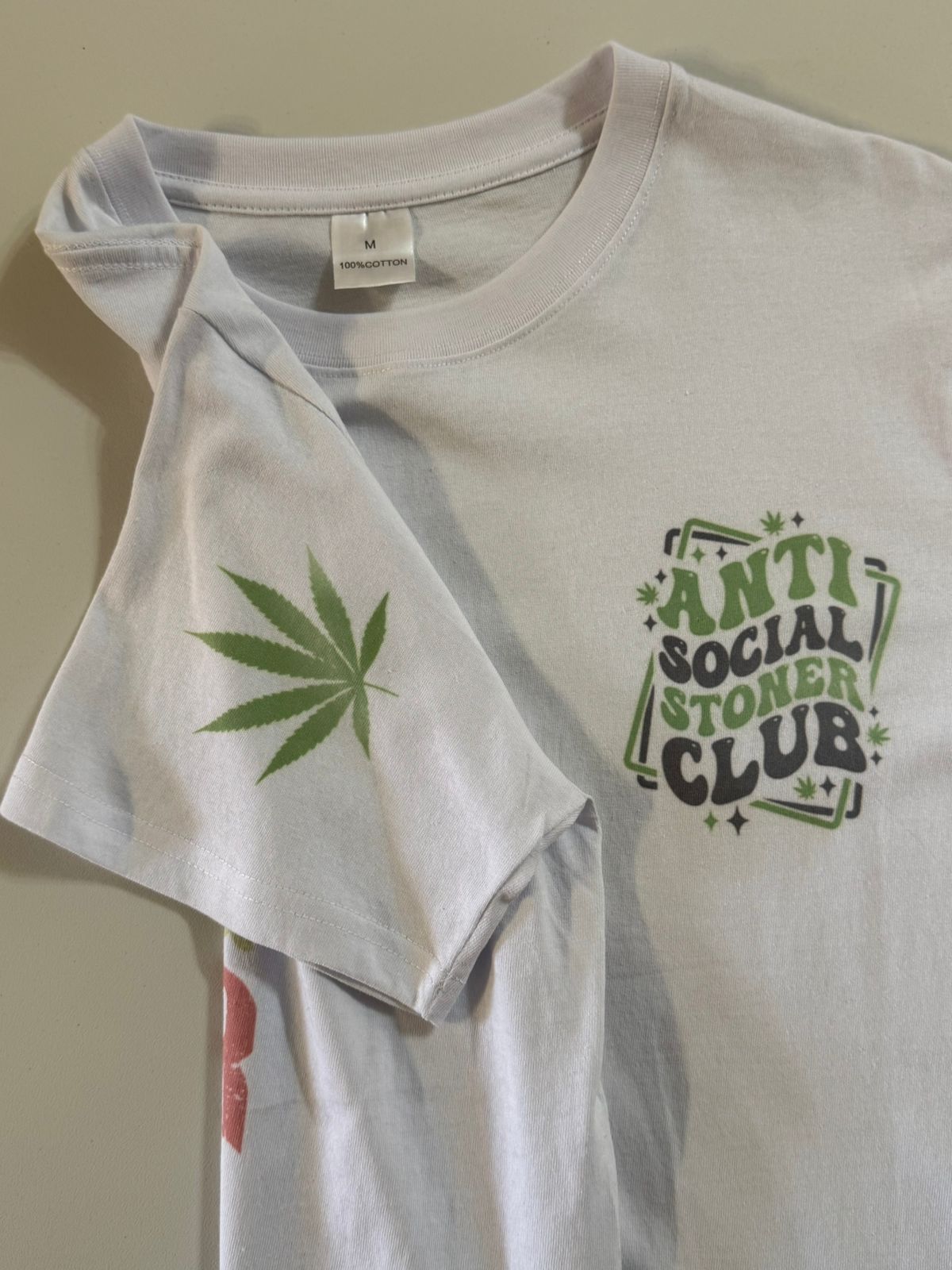 Celebrate your vibe with these unique tees! The "Anti Social Stoner Club" shirt features a bold graphic and a cannabis leaf on the sleeve, while the folded "Lonely Stoner" tee offers a cool, vintage-inspired design. Made from 100% cotton, these comfortable shirts are perfect for expressing your laid-back style.